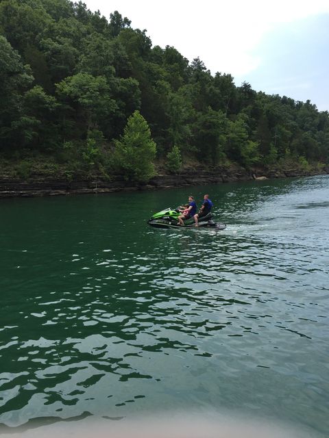 湖を泳いだり、ジェットスキーを運転したり、乗せてもらったり!!