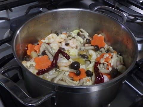 オリーブオイルと唐辛し、キノコ、エビが似合うと思う。貝もいいけど、