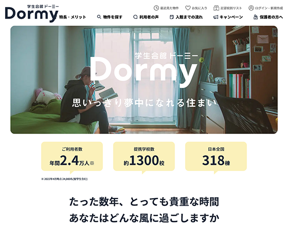 ホテル「ドーミーイン」「共立リゾート」の共立メンテナンスが運営する「学生会館ドーミー」は、